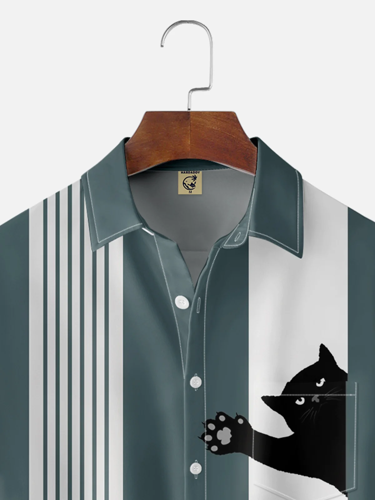 Hardaddy Cat Chest Pocket Short Sleeve Bowling Shirt