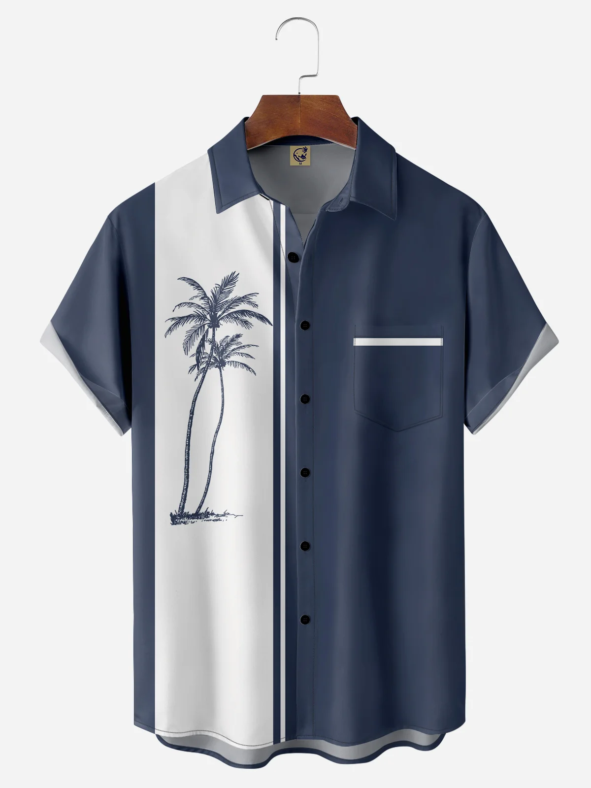 Coconut Tree Chest Pocket Short Sleeve Bowling Shirt