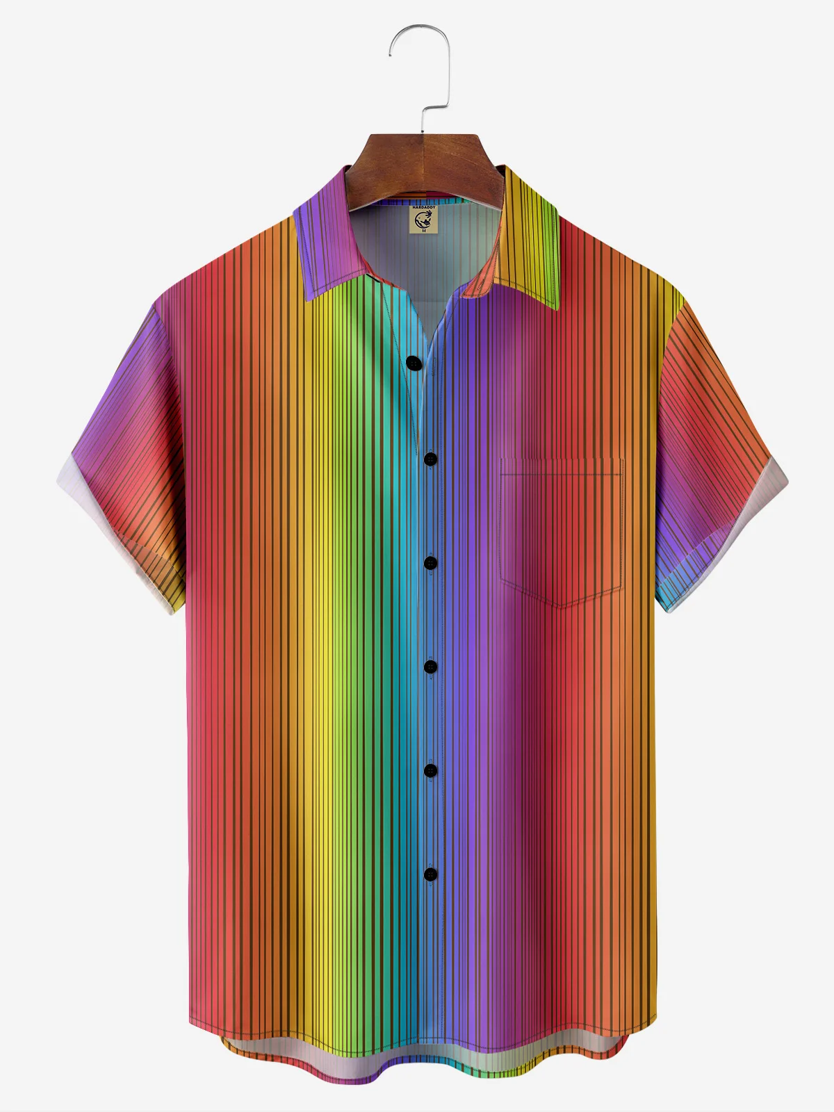 Hardaddy Colorful Striped Chest Pocket Short Sleeve Casual Shirt