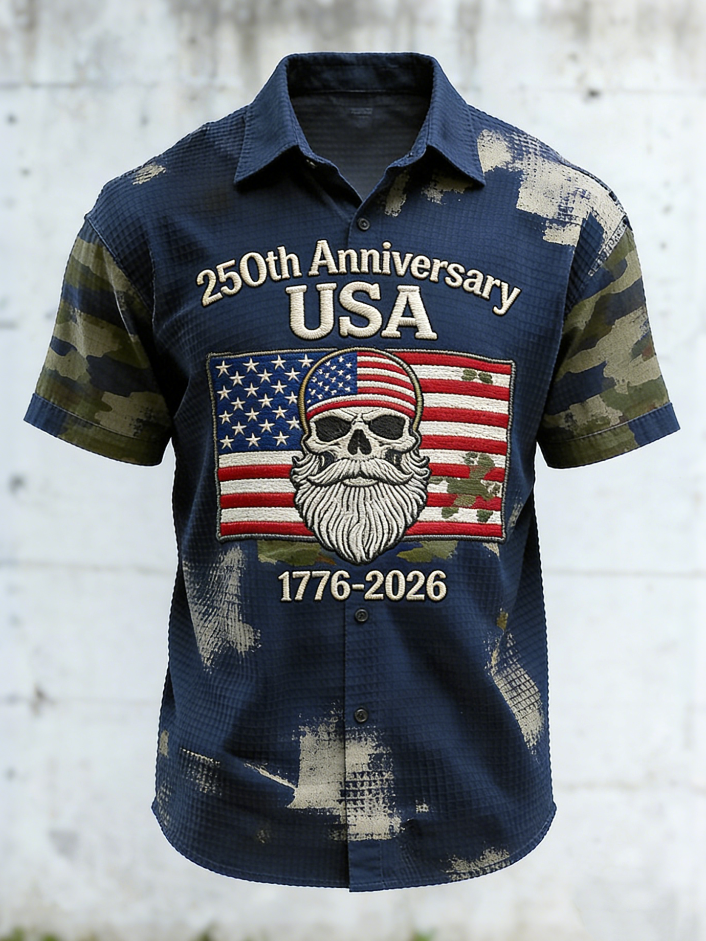 Moisture-wicking 250th Anniversary Independent Day American Flag USA Freedom Chest Pocket Patriotic Shirt