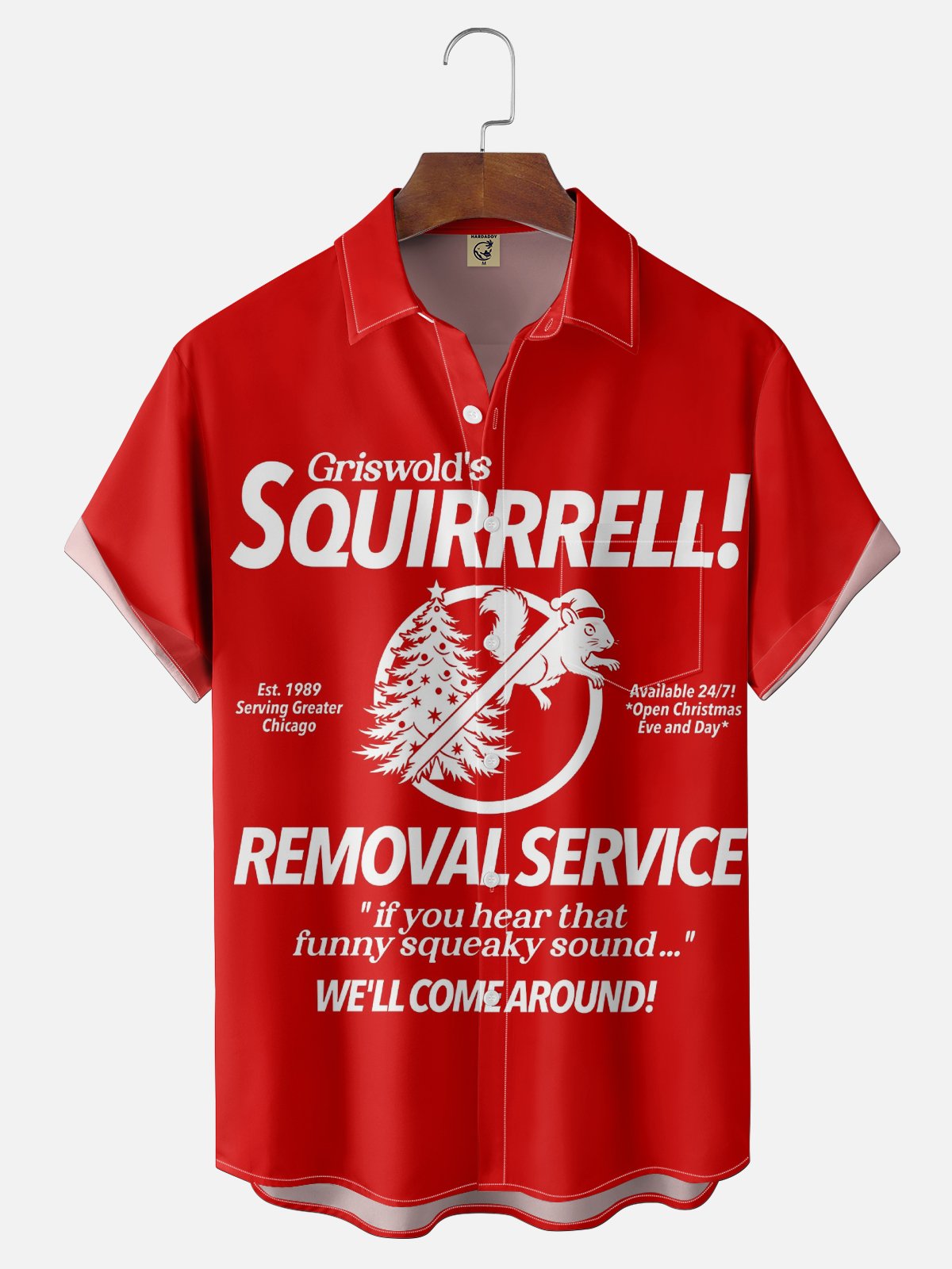 Moisture Wicking Christmas Squirrel Slogan Chest Pocket Hawaiian Shirt
