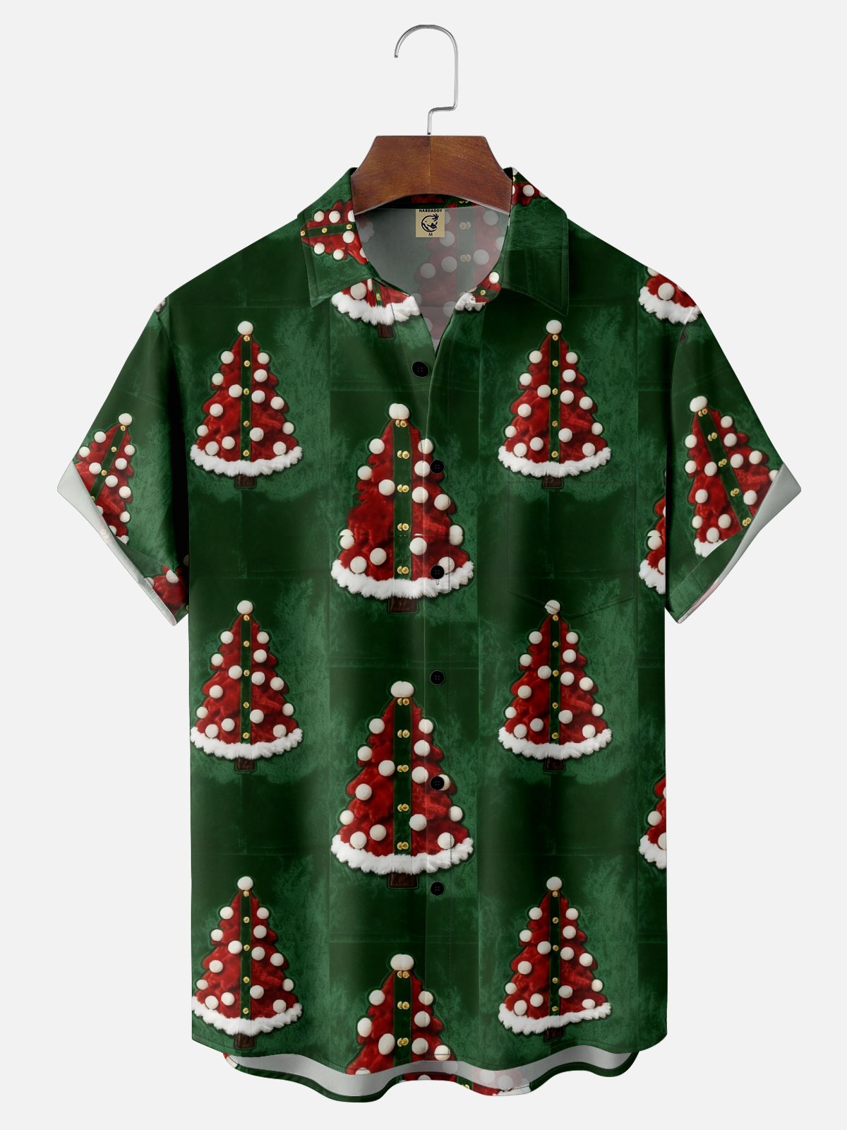 Moisture-wicking Christmas Tree Chest Pocket Holiday Shirt