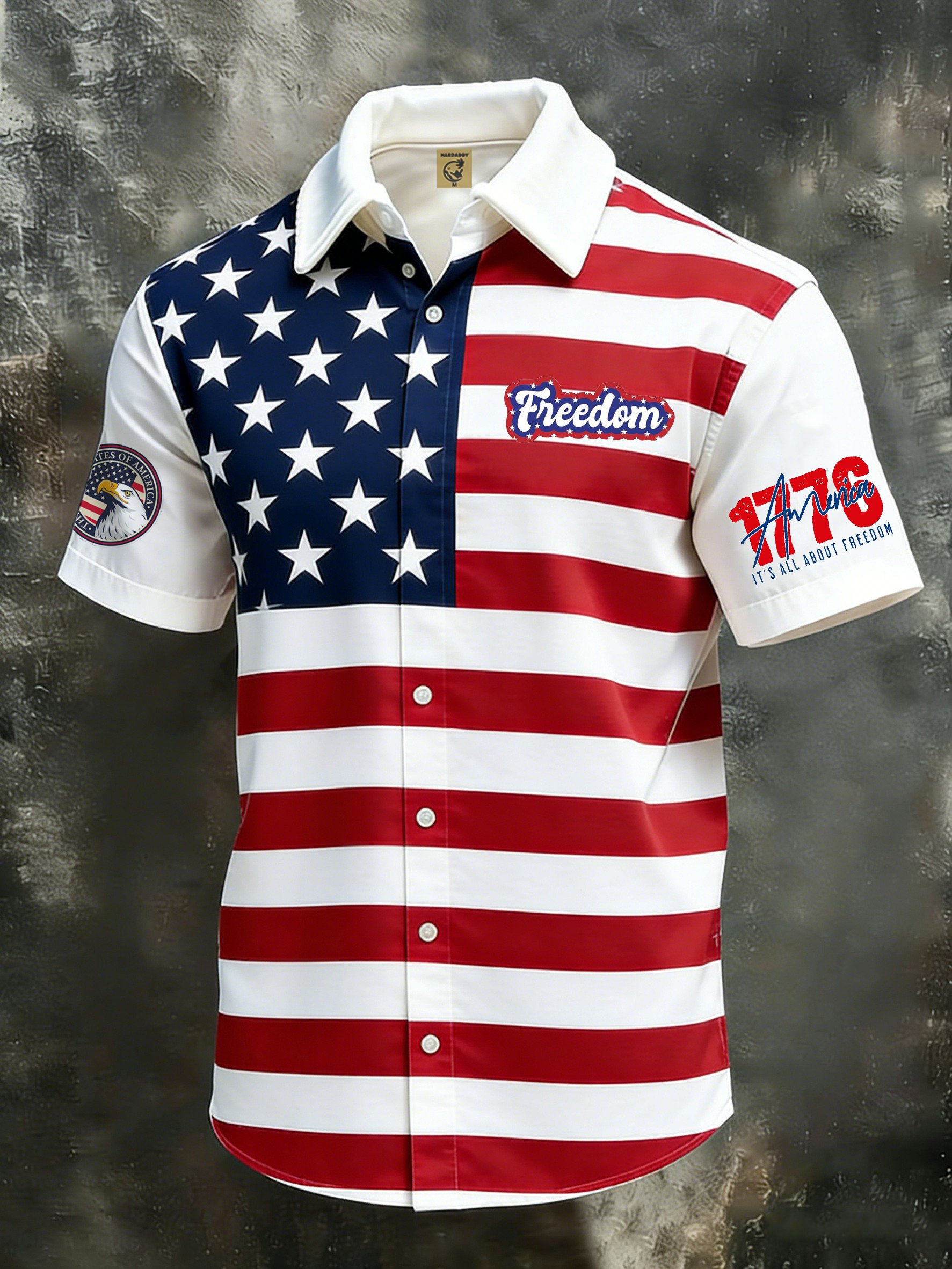 Moisture-wicking Independent Day 1776 American Flag USA Freedom Chest Pocket Patriotic Shirt