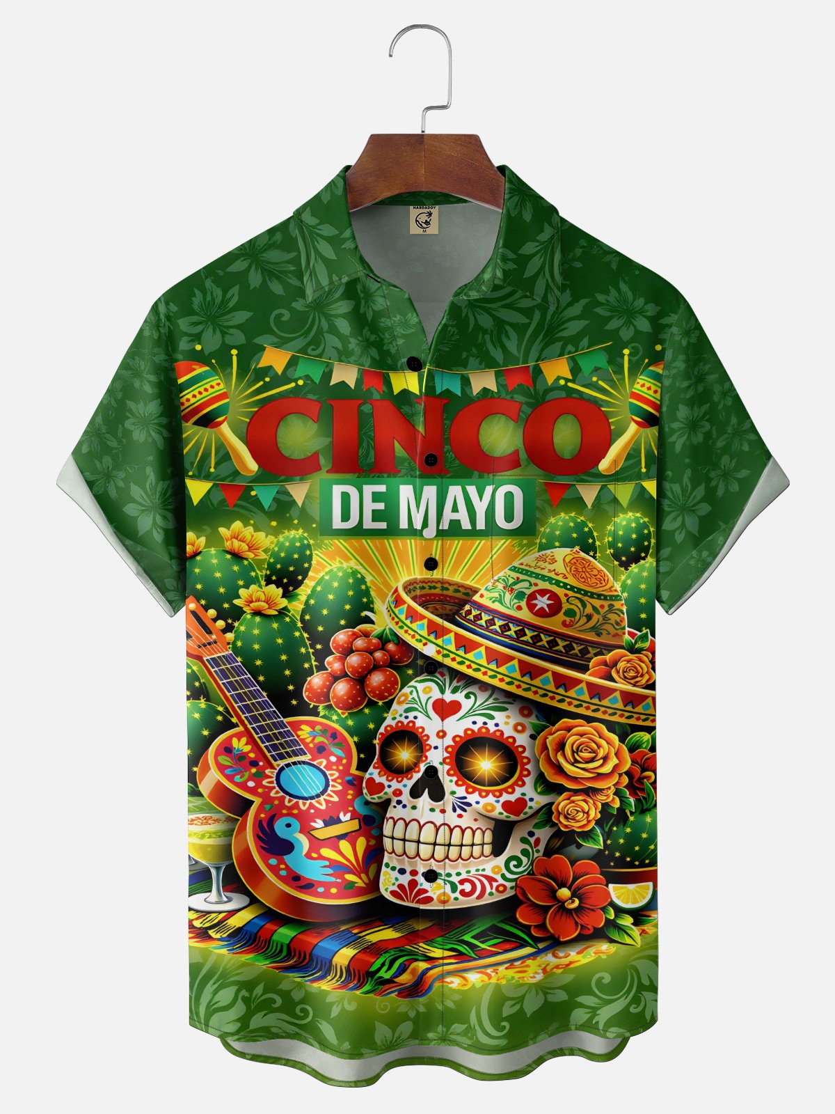Moisture Wicking May Day Peaked Cap Skull Maracas Guitar Chest Pocket Holiday Shirt