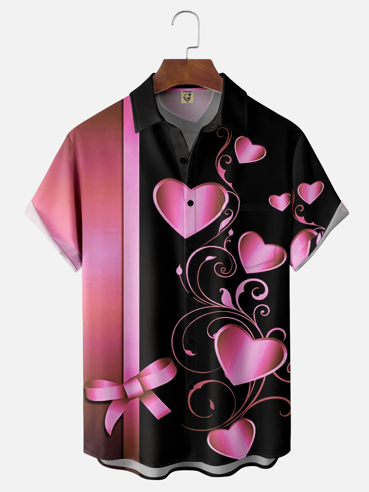 Moisture-wicking Saint Valentine‘s Day Heart Chest Pocket Casual Shirt