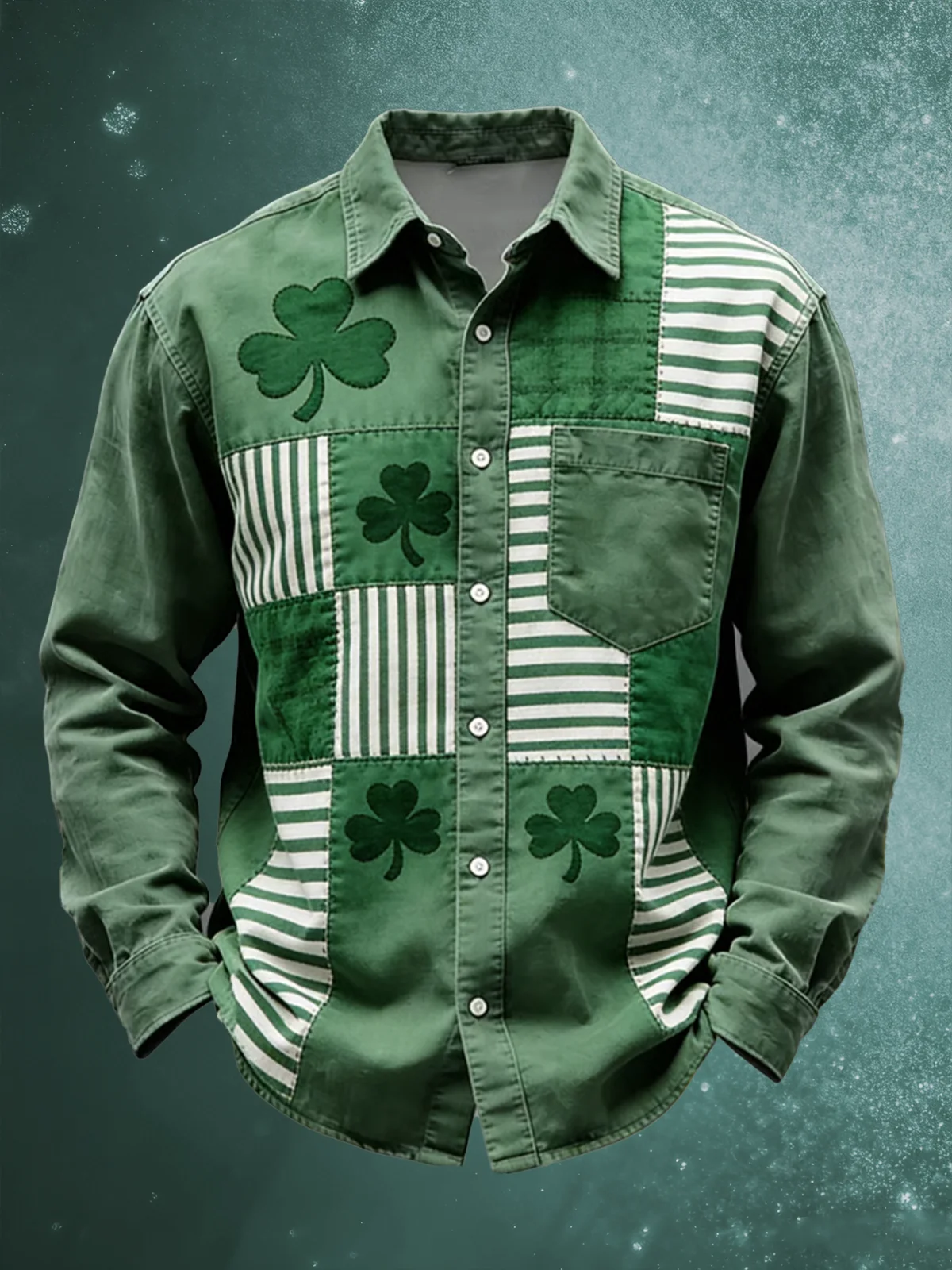 Moisture Wicking, St. Patrick's Day Chest Pocket Long Sleeved Shirt