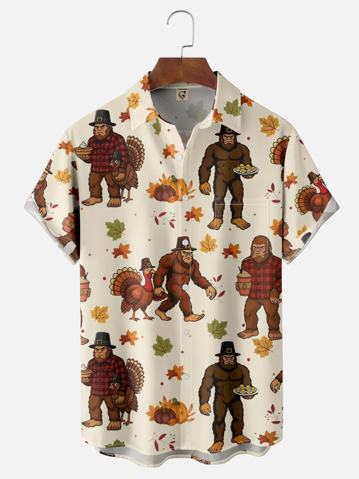 Moisture-wicking Thanksgiving Turkey Bigfoot Chest Pocket Casual Shirt