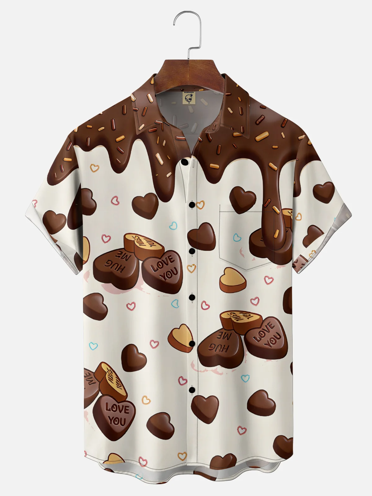 Moisture-wicking Valentine's Day Heart-Shaped Chocolates Chest Pocket Casual Shirt